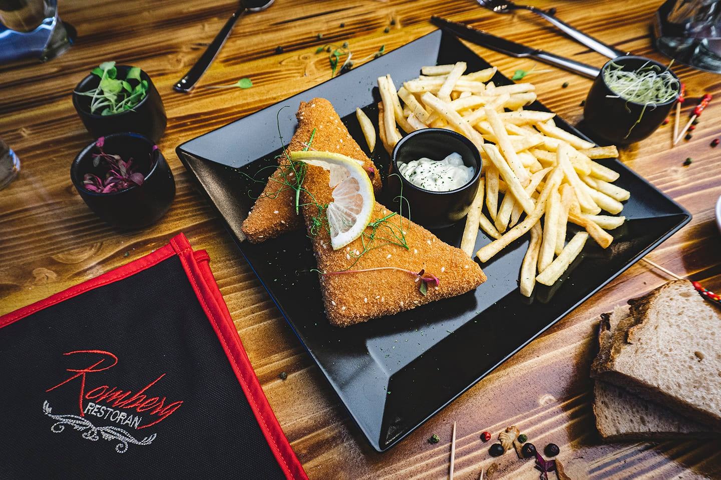 svinjetina, pommes, tartar, limun / pork, french fries, tartar sauce, lemon -