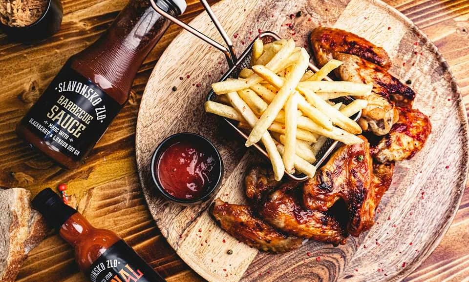piletina, pommes, ajvar, luk / chicken, french fries, ajvar, onion -